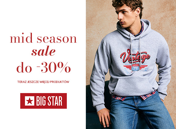 MID SEASON SALE DO -30% W BIG STAR! MID SEASON SALE DO -30% Do -30% na wybrane produkty do odwołania Promocja obowiązuje od 18 września 2025 do 21 listopada 2025
